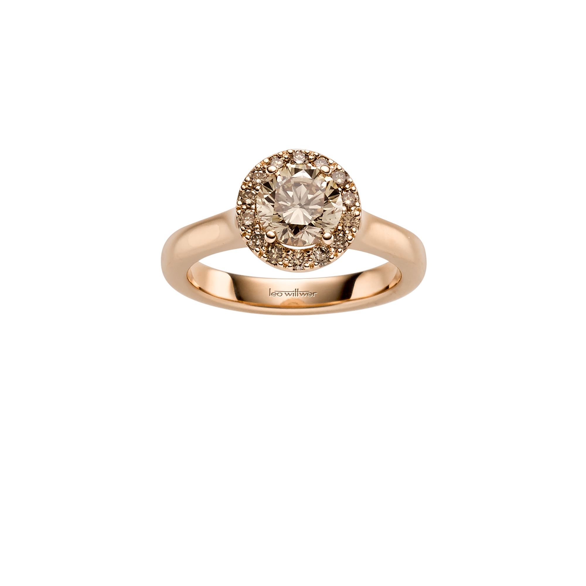 Rundum strahlend: Memoire-Ringe erinnern uns immer wieder an wunderbare Ereignisse wie einen Jahrestag, ein Jubiläum oder die Geburt eines Kindes. Dieses Modell in Roségold mit braunen Diamanten gibt dem Thema einen neuartigen Look. Dazu passend der Diamantring, der mit seinem raffinierten Spiel aus kreisförmig angeordneten Diamanten und einem Solitär-Brillant in der Mitte die Blicke auf sich zieht.